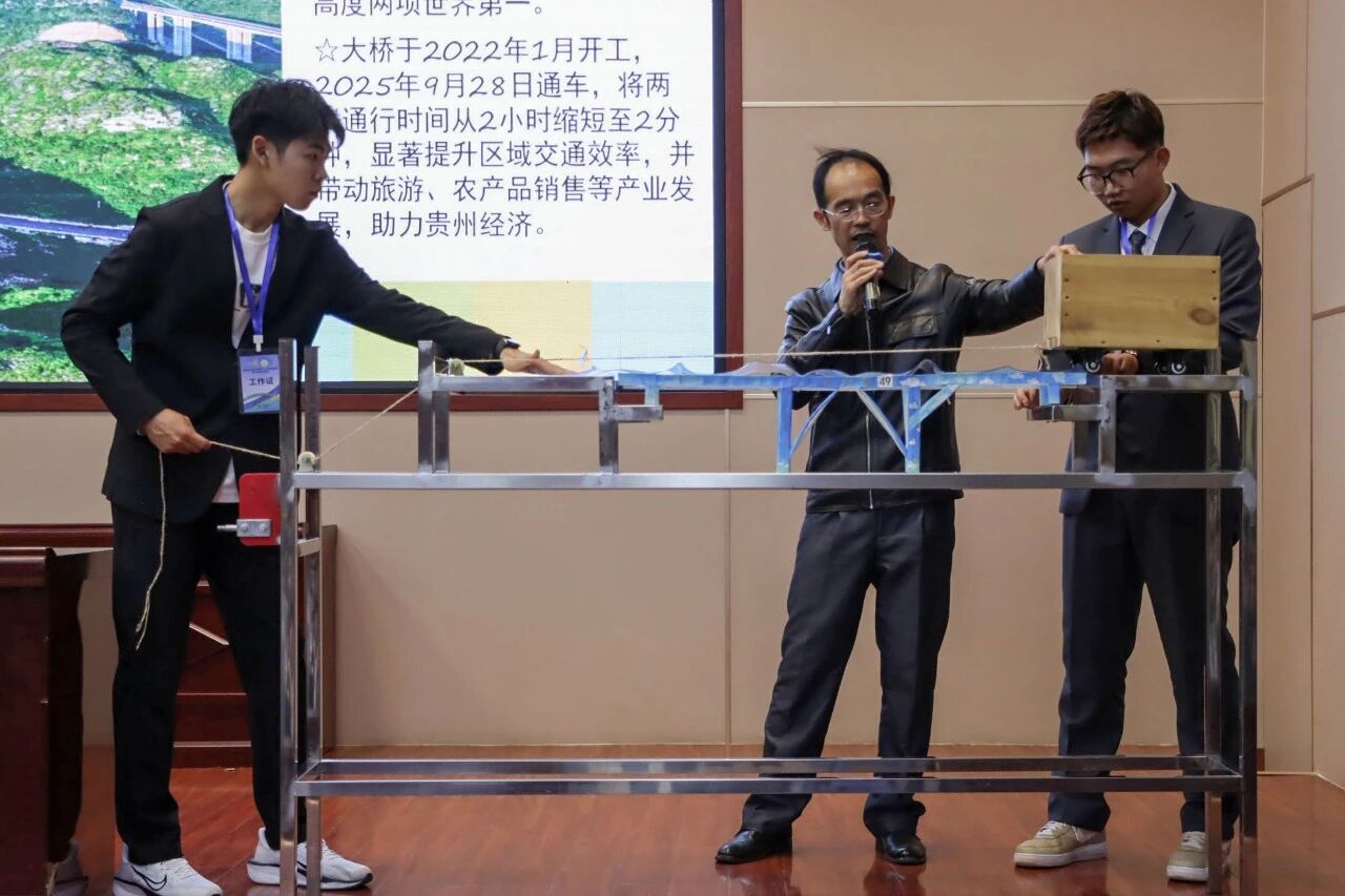 周海龙详细介绍了桥梁结构设计大赛的起源及发展历程,强调了竞赛意义、要求、规则等,分享了往年竞赛的精彩照片,为同学们演示了桥梁承重性的检测方式,并耐心细致地解答了同学们的疑问。