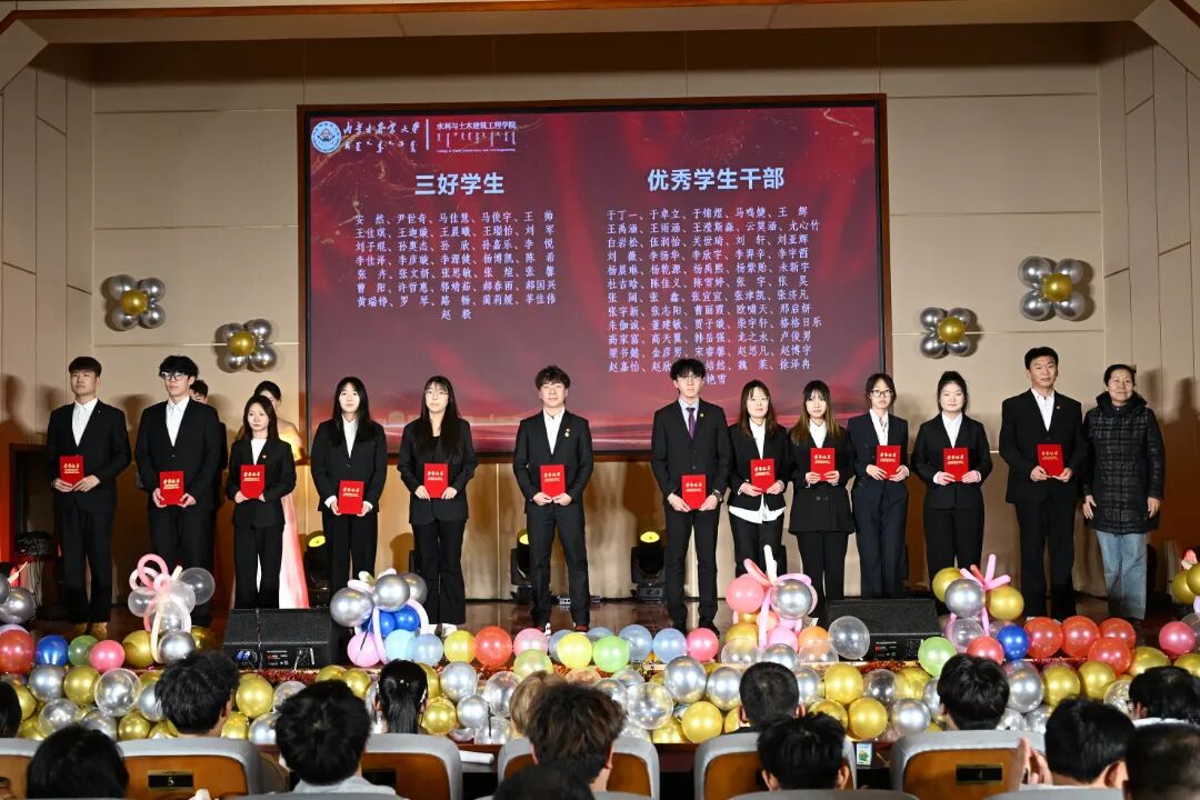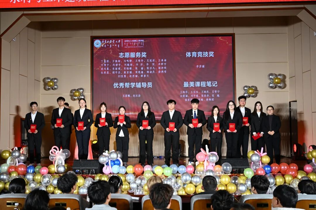 本次活动以“青春筑梦为家国,挺膺担当向未来”为主题,晚会由“以青春之我,立家国之志”“以担当之行,赴时代之约”“以奋进之姿,赴未来之程”为主线,通过丰富多彩的文艺节目,展现水建学子昂扬向上的精神风貌和矢志报国的坚定信念。晚会中,对学院一年来涌现出的先进集体和个人进行了表彰,学院党委副书记郑晓波宣读表彰决定。学院22级农业水利工程卓越班、已推免至中国农业大学攻读研究生的韩岳强同学作为获奖代表发言。