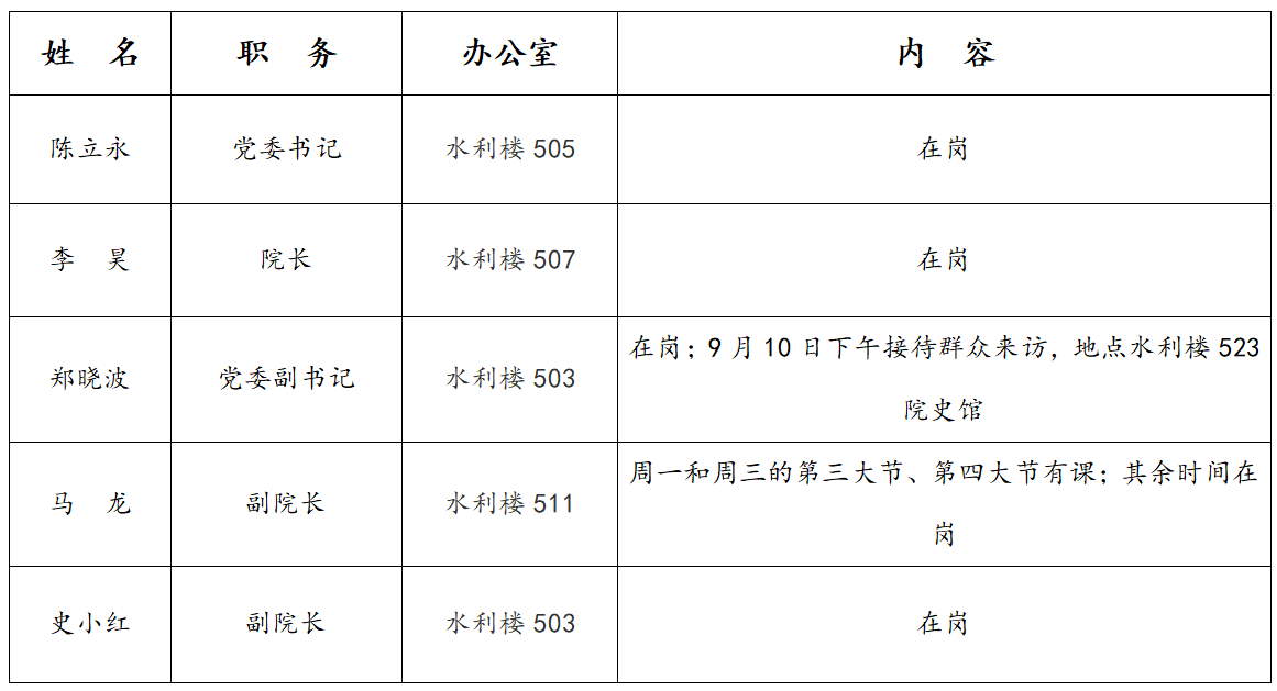 2025年9月15日—2025年9月19日 学院领导去向告知