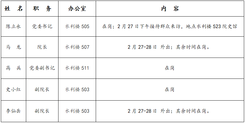 2026年2月26日—2月28日 学院领导去向告知