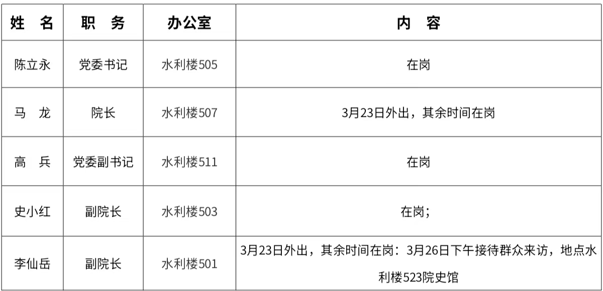 2026年3月16日—3月20日 学院领导去向告知