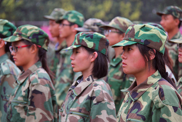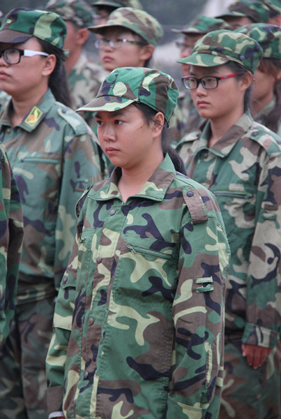 今天下午,当我们走在操场上的时候,两个矮小瘦弱的女生跟着队伍一遍遍训练时的认真便引起了我们的注意。其中一位是2014级地质班唯一的女生邓磊,她来自湖南郴州,虽然第一次到千里之外的北方上学,对于北方的气候还有些不适应,但在军训中不喊苦,不叫累,毫不服输。另一位是来自巴盟临河的任照怡,她没有内蒙人的粗犷,豪放,瘦小的她同“湘妹子”邓磊一样,让人不由自主得想要呵护。当与她们面对面交谈时,她们嘴上的严重干裂最先吸引了大家的注意,被问及为什么嘴唇会干裂时,任照怡轻声慢语地和我们说,为了踢好正步,在休息的间隙忘记了喝水,仍在思考、讨论踢正步的动作要领。刹那间,大家都选择了沉默,感动和钦佩缓缓飘落在心中。