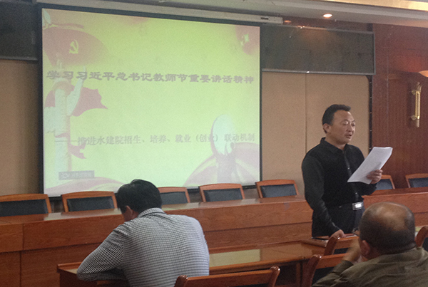 学院把学习宣传贯彻总书记重要讲话精神与深化教学质量管理年,实施“招生、培养、就业(创业)”联动机制以及教学、科研和学科建设紧密结合,制定了学院“招生、培养、就业(创业)联动机制”。刘廷玺院长向全院教师详细解读了我院“招生、培养、就业(创业)联动机制”并对近期教学、科研等工作作出部署。