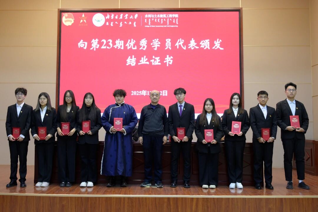 郑晓波向学校关工委一直以来对学院团学工作的支持表示衷心感谢,向二十三期培训班顺利结业的学员表示祝贺,并对本期培训班学员提出了希望和要求:一是坚定理想信念,筑牢思想根基。希望同学们深入学习马克思主义基本原理和习近平新时代中国特色社会主义思想,增强对党的创新理论的政治认同、思想认同、理论认同、情感认同,树立远大理想,把稳人生航向。二是坚持知行合一,提升实践能力。要珍惜学习机会,做到深学细悟、学以致用,积极投身实践锻炼,将理论学习成果转化为服务同学、推动发展的实际行动,努力成长为实干有为的青年骨干。三是勇担时代使命,发挥引领作用。要主动锚定服务发展大局,锤炼作风、凝聚合力,带动广大同学共同进步,践行“请党放心,强国有我”的青春誓言。
