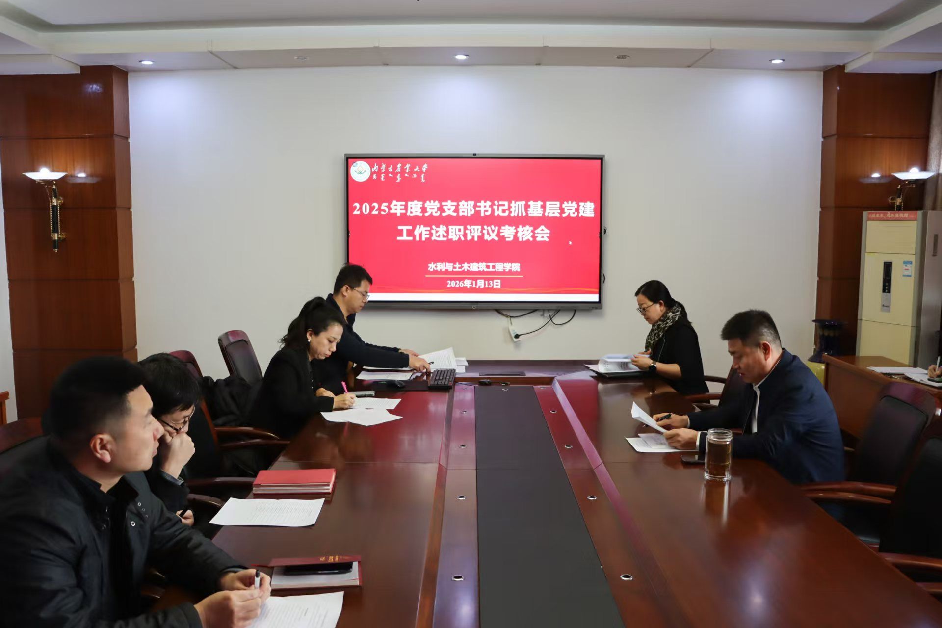 为持续提升基层党建工作质量,全面检验基层党建工作成效,压实党支部书记“第一责任人”职责。2026年1月13日,学院党委组织召开2025年度党支部书记抓基层党建述职评议考核工作会,学院党委委员、各党支部书记参加会议,会议由学院党委书记陈立永主持。