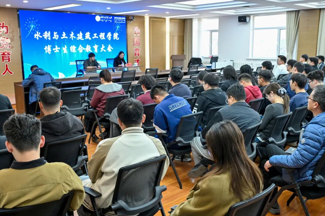为全面落实立德树人根本任务,一体化推进教育、科技、人才协同发展,切实助力博士生学业成长与生涯规划,2026年3月19日,学院在水利楼502会议室召开博士生综合教育大会。会议由学院党委副书记高兵担任主讲,辅导员范聪浩主持。