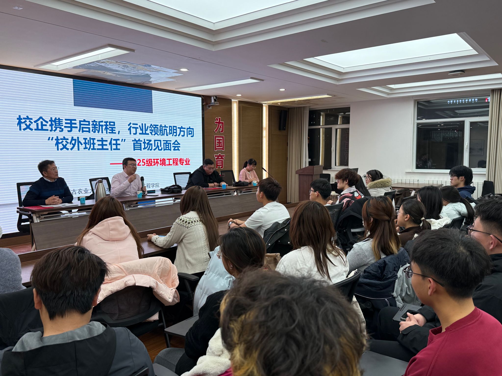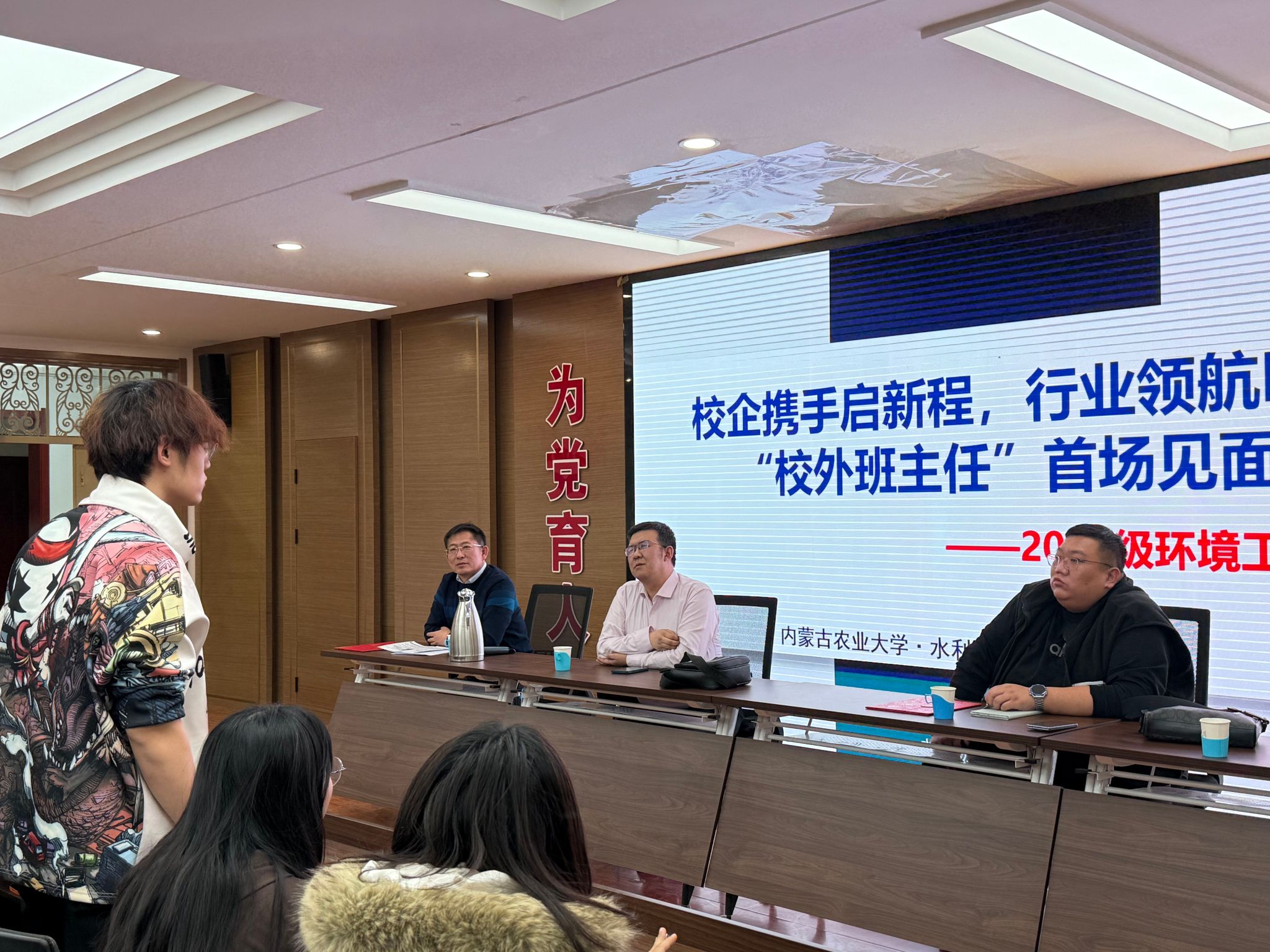 为深化校企协同育人,充分发挥校外班主任的行业资源优势,助力学生把握行业前沿、明晰学业规划、提升综合素养,11月28日,学院2025级环境工程专业校外班主任见面会在水利楼502会议室举行。校外班主任内蒙古城市规划市政设计研究院副院长韩军,内蒙古天柏生态环境咨询有限公司总经理崔小超,环境工程专业负责人卢俊平及学院2025级环境工程专业全体学生参加活动。学院教学管理办公室主任梁文主持会议。